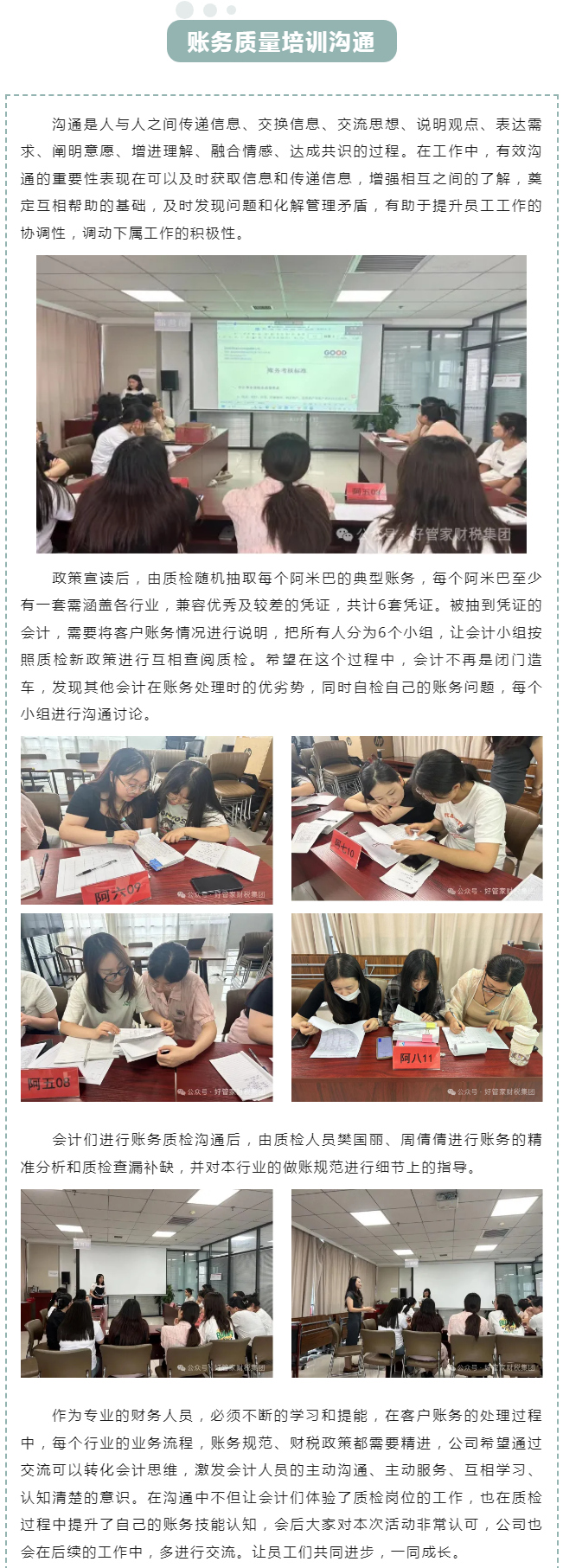 2024年公司重点对会计人员账务能力及账务质量进行了多维度的规范,经决定于2024年7月24日下午3点由质检部樊国丽、周倩倩对公司《账务质量要求》进行会计全员的宣贯。