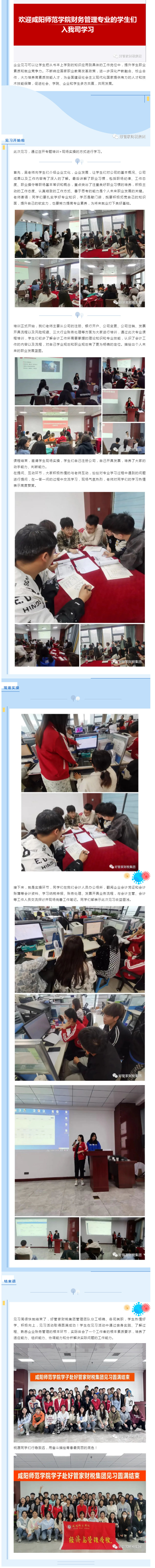 为拓展学生的视野,清晰职业规划,引导学生感受企业文化,2023年5月29日,咸阳师范学院组织学生赴陕西好管家财税集团有限公司进行为期一周的见习。