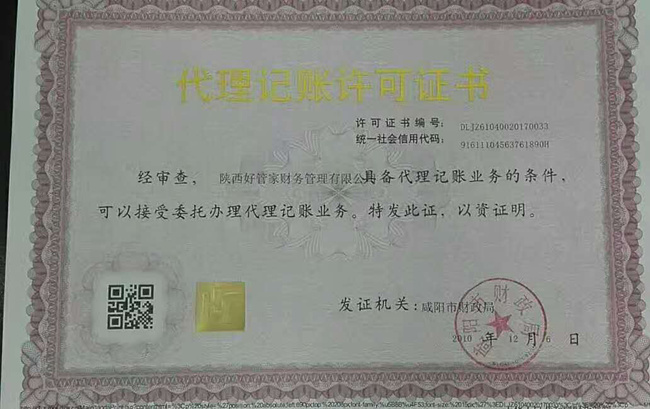 祝贺公司领取新版咸阳财政局办法的代理记账许可证 代理记账-我们更专业